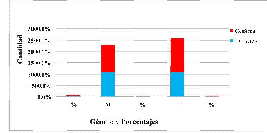 Gráfico 4. Distribución de los neonato por género y tipo de parto.