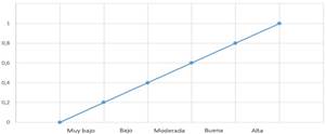 Según, Romero et al (7), indican los parámetros para el análisis de la confiabilidad de un instrumento. En la primera validación del instrumento para adolescentes y las familias por alfa de Cronbach se obtiene una calificación de 0,76 que implica una confiabilidad Buena, aceptable del instrumento en análisis, se refleja en la gráfica 1 y se interpreta en la tabla 1.