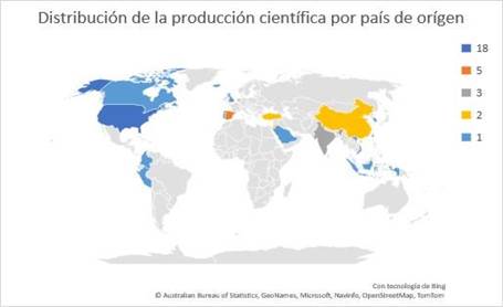 Distribución de la producción científica por país de origen.