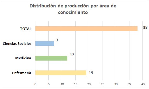 Distribución de la producción científica por área de conocimiento.