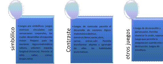 Ballesteros (1982) realizó un análisis a la metodología de la psicomotricidad vivencial, la cual está basada en el juego, donde los niños naturalmente exploran el entorno que le rodea descubriendo su ser y el de los demás (Martínez, ob cit). En la figura 6, se describen las etapas que desarrolla el niño a través del juego: simbólico, de contraste y otros, las cuales abordan las diferentes dimensiones que obtiene al vivenciarlo.