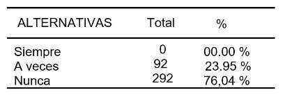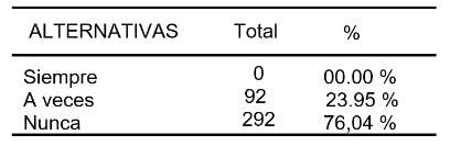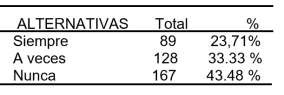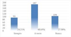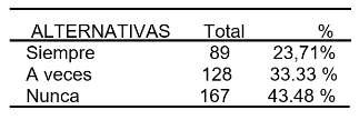 Según la Tabla 1, la mayoría de los encuestados (76,04%) indican no utilizar herramientas informáticas en el transcurso de sus estudios de carrera. Por otro lado, el 23,95% afirma hacerlo, aunque su uso es ocasional, reflejándose en una frecuencia de "a veces"