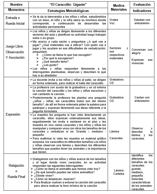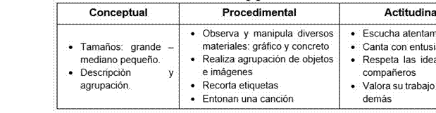 Justificación: Esta actividad se realiza con la finalidad de que los niños y niñas conozcan los diferentes tamaños: grande - mediano y pequeño, que poseen diversos objetos que observar y manipulan.