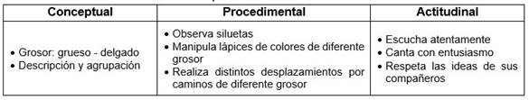 •Reconocer y nombrar objetos distinguiendo en ellos la forma, tamaño, color, grosor (s/p).
