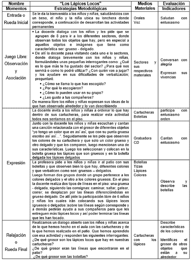 Cuadro 8. Desarrollo de la sesión de los lápices loco
