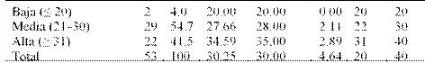 Nota. Puntos de corte: baja ≤ 20; media 21–30; alta ≥ 31 (13).