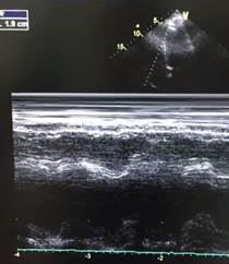 A las 48 horas de ingreso en UCI presenta de forma súbita deterioro hemodinámico e hipoxemia refractaria que no mejoraba, a pesar de encontrase en decúbito prono y con parámetros ventilatorias adecuados. Se procedió a realizar ecocardiograma (Fig. 1) que reporta ventrículo izquierdo con diámetros conservados, motilidad conservada, función sistólica FEVI 61% por Simpson, cavidades derechas dilatadas VD 4.2 basal, TAPSE 1 cm, onda S 0.07 m/seg, vena cava 1.7 cm, en el eco doppler llenado diastólico con patrón normal, insuficiencia tricuspidea moderada Vmax 3.2 m/seg, PSP aproximada 45 mmhg, disfunción sistólica del VD, dilatación de cavidades derechas.