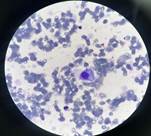 Los estudios de laboratorio iniciales (Tabla 1) del 26 de abril de 2024 mostraron resultados alarmantes, incluyendo anemia normocítica normocrómica arregenerativa, leucopenia severa, neutropenia severa, linfopenia moderada, trombocitopenia severa, hipertrigliceridemia, hiperferritinemia e hipofibrinogenemia. Los marcadores inflamatorios estaban extremadamente elevados, con una PCR de 23.9 mg/dL, LDH de 3322 U/L, y ferritina de 3028 ng/mL. Los niveles de triglicéridos eran de 698 mg/dL, sugiriendo un estado inflamatorio sistémico severo. Las enzimas hepáticas (TGO 1337 U/L, TGP 545 U/L) y bilirrubinas totales (2.88 mg/dL) confirmaron el compromiso hepático significativo. Además, el tiempo de protrombina prolongado y la no coagulación en TTP indicaban coagulopatía. Estudio de tomografía simple de abdomen con evidencia de hepatomegalia y ascitis. Las pruebas virológicas revelaron una alta carga viral de Epstein-Barr (7479014 copias/mL en sangre y 320910 en médula ósea), junto con una infección concomitante por CMV (250 copias), mientras que las pruebas para HIV y tuberculosis fueron negativas. En el mielograma se evidenció hipocelularidad medular con hemofagocitosis evidente, consolidando el diagnóstico de linfohistiocitosis hemofagocítica (HLH) secundaria a infecciones por VEB y CMV (Figura 1 y 2).