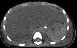 A su llegada a la unidad de cuidados intensivos pediátricos, se encontraba en estado de choque, lo que requirió intubación rápida y soporte con aminas vasopresoras. El examen físico inicial mostró a una paciente pálida, visiblemente deshidratada, con un tiempo de relleno capilar prolongado de 4 segundos y taquicardia significativa. Presentaba un rash petequial confluente eritematoso en cara, tórax y abdomen, gran distensión abdominal con hepatosplenomegalia, y el hígado extendido hasta el flanco derecho.