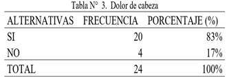 3. ¿Al culminar su jornada laboral sufre usted de dolor de cabeza?