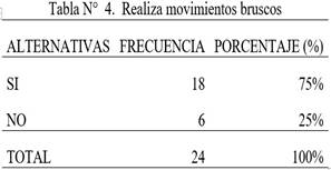 4. ¿En su trabajo diario realiza movimientos bruscos que le pueden originar lesiones?
