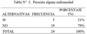 5. ¿Presenta usted alguna enfermedad adquirida en el área?