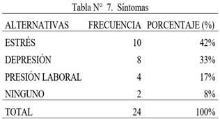 Se observa en los resultados de la encuesta que el 63% del personal de enfermería el tiempo dedicado a sus labores diarias no es suficiente. Mostrando que en este grupo de trabajadores existe una sobrecarga laboral, lo que trae como consecuencia que se vea afectada la salud de estos trabajadores por el agotamiento que originan estos problemas.