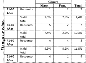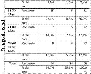 La edad de las personas con mayor ingreso hospitalario con diabetes tipo 2 son del género masculinos del rango de 61 a 70 años representado con un 22.06%, seguido del 11.76% de mayores de 80 años del mismo sexo. El porcentaje menos afectado corresponde al género femenino en todos los rangos de edad, principalmente de 51 a 60 años de edad, con un 1.47%.