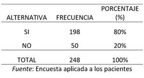 La encuesta aplicada a los pacientes que sí de acuerdo al proceso de endoscopía indicado por el médico la enfermera le explicó cómo era el procedimiento para darle la seguridad un 80% manifestaron que sí lo hacían, pero un 20% expresaron que no. En este sentido se debe trabajar para que las enfermeras cumplan efectivamente con el rol educativo que cada una debe desempeñar en todos los contextos de trabajo.