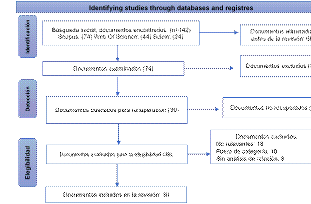 La recopilación de datos se llevó a cabo en el intervalo temporal de abril a junio de 2025, utilizando bases de datos académicas y repositorios institucionales pertinentes, tales como Scopus y Web of Science (Sánchez et al., 2022). Los criterios de inclusión consideraron documentos publicados en el intervalo temporal de 2019 a 2025, redactados en español, portugués o inglés, que se enfocaban en al menos uno de los siguientes ejes: 1) la implementación de la inteligencia artificial generativa en el ámbito de la educación superior; 2) la ética de la Inteligencia Artificial en contextos educativos; 3) las políticas universitarias sobre tecnologías emergentes; y 4) la educación jurídica en América Latina. Se eliminaron artículos de carácter técnico carentes de contenido pedagógico o ético, junto con documentos normativos que no están disponibles en su versión completa. El procedimiento de selección se llevó a cabo en tres fases consecutivas:
