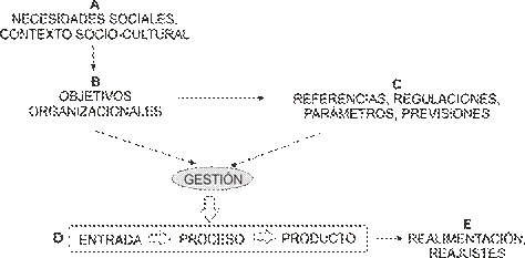 Entonces, siguiendo la Teoría de la Acción formulada por Padrón-Guillén (2000), la estructura de la gestión lleva implícitos cinco componentes esenciales: A) un contexto de necesidades, B) Un objetivo que responda a ese contexto, C) una estructura de regulaciones y parámetros de previsión de todo el proceso global, D) una secuencia de situación inicial, trayectoria intermedia y unos resultados o salida o situación final obtenida y E) Un proceso de realimentación y reajuste (aprendizaje organizacional) que modifica al componente del literal C arriba mencionado.