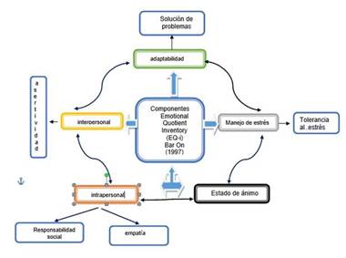 Asimismo, Bar-On ob cit. propone un modelo mixto, conocido como “Emotional Quotient Inventory (EQ-i), considerado uno de los instrumentos más usados para determinar los cinco rasgos de la Inteligencia Emocional, estos son: interpersonal, intrapersonal, manejo del estrés, adaptabilidad y humor” (p.15).