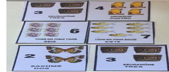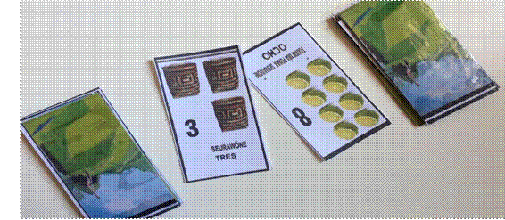 Descripción: el juego tiene como objetivo que los alumnos identifiquen los conceptos de los grabados presentes en las cartas y los símbolos (escritura) de los números en taurepan y en español.