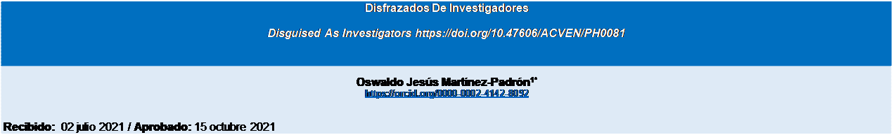 Martínez-Padrón, O. J. (14 de septiembre de 2017). Disfrazados de Investigadores [Conferencia virtual]. A.C. Venezolana de Investigación en Pro de la Humanidad ACEVISPROH Internacional. https://bit.ly/3m7cAgY