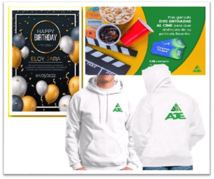 • Tarjeta de cumpleaños con el logo de AJE felicitando al cliente por su cumpleaños. Esta estrategia se implementa de forma permanente durante los seis meses de duración de la propuesta.