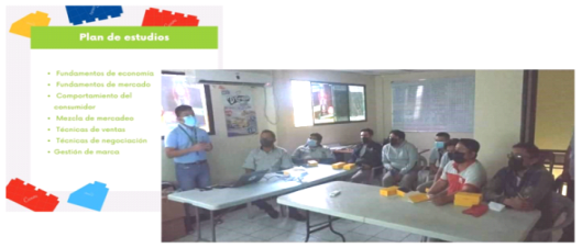 Esta estrategia consiste en brindar capacitaciones a los clientes minoristas en marketing y técnicas de ventas como una oportunidad de educación considerando que muchos de ellos pueden no tener conocimiento sobre esta área y si la tienen es muy escasa, empírica y no la saben aplicar. Estas capacitaciones se llevan a cabo en las instalaciones de AJE los días miércoles y viernes durante el mes de Febrero de 2021. Cada capacitación puede tener hasta 50 clientes minoristas inscritos y cada clase dura dos horas, se dictarán dos turnos, en la mañana y en la tarde de acuerdo a las facilidades de los clientes minoristas. El curso dura 8 clases en total en las cuales se revisarán 8 unidades diferentes, las cuales se presentan a continuación (Registro fotográfico 3).