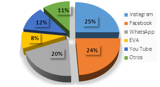 La plataforma interactiva utilizaría en su proceso de aprendizaje de un idioma, fue establecida por el veinte cinco por ciento (25%) de los consultados, respondieron que utilizan Instagram en su proceso de aprendizaje de un idioma, mientras que el veinticuatro por ciento (24%) de los encuestados indicaron que utilizan Facebook en su proceso de aprendizaje de un idioma, para el veinte por ciento (20%) de los interrogados, expusieron que emplean WhatsApp en su proceso de aprendizaje de un idioma, sin embargo el doce por ciento (12%) de los estudiados afirmaron que emplean You Tube en su proceso de aprendizaje de un idioma, el once por ciento (11%) de los encuestados afirmaron que emplean otros medios en su proceso de aprendizaje de un idioma y para el ocho por ciento (8%) de los encuestados, dijeron que emplean EVA en su proceso de aprendizaje de un idioma.